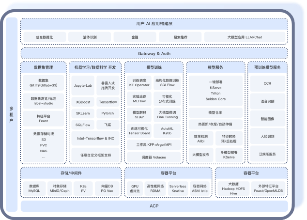基于云原生架构,给予高度可扩展的存储、数据处理能力,以支持大型语言模型的训练和部署。容器化、动态资源管理等特性使产品更加灵活、高效和稳定